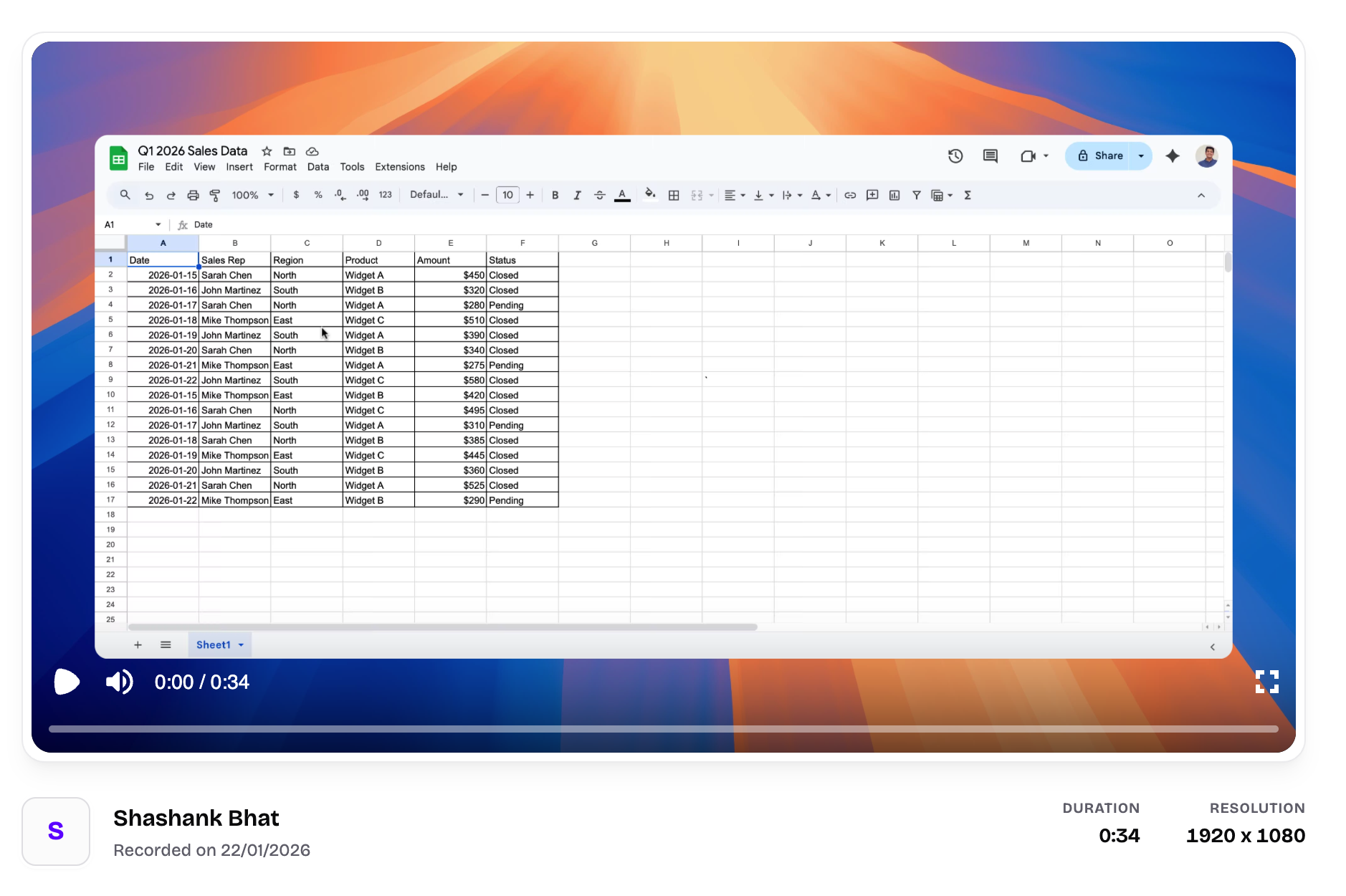 Hit record and capture your screen. No setup, no fuss. Just walk through whatever you're explaining - whether it's a product demo, bug report, or tutorial.